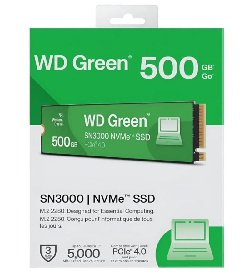 WD Green SN3000 NVMe SSD Gen4 PCIe, up to 5000MB/s speed, reliable & budget-friendly storage