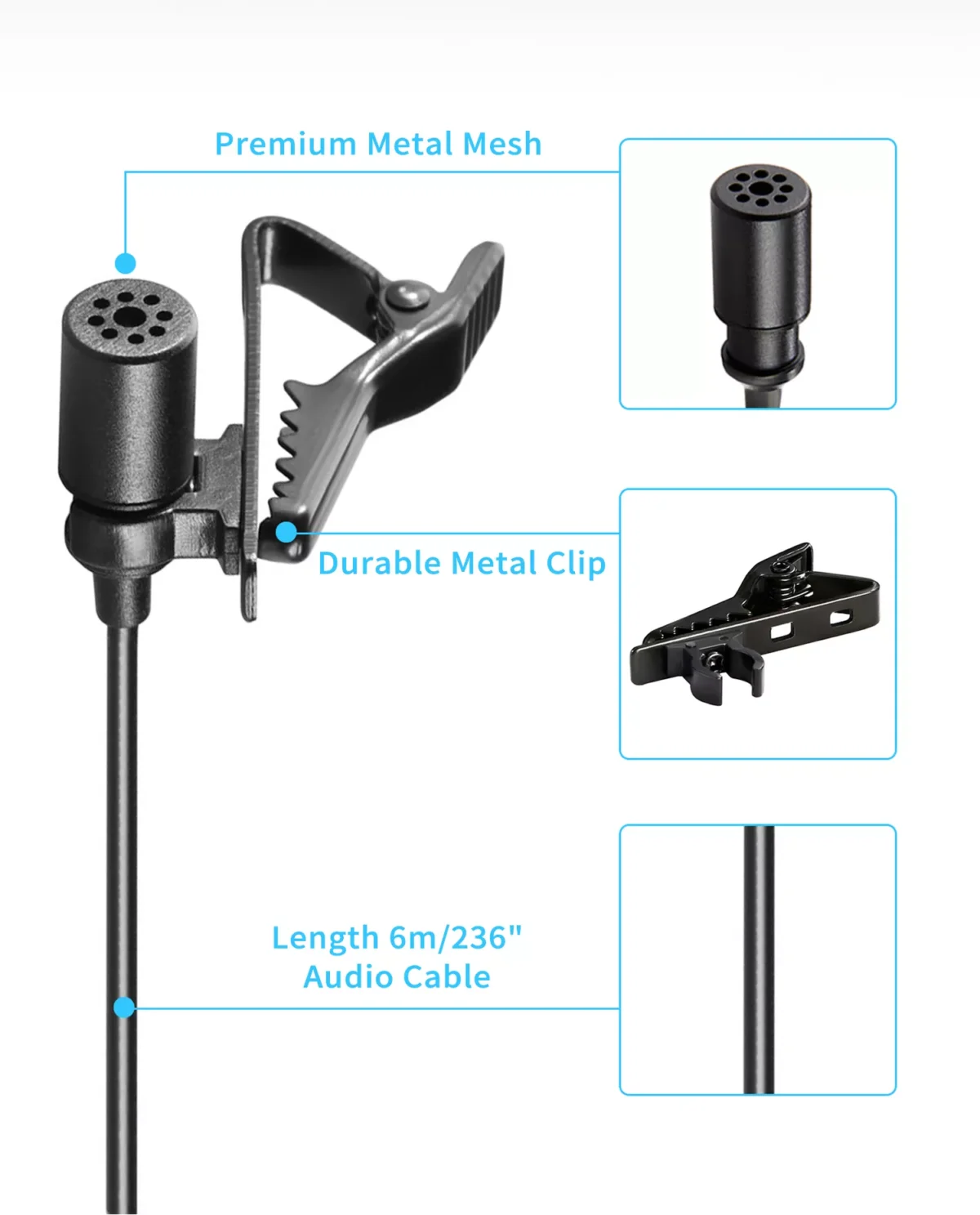 🔹 6-Meter Long Cable – Extra length for indoor & outdoor recordings
