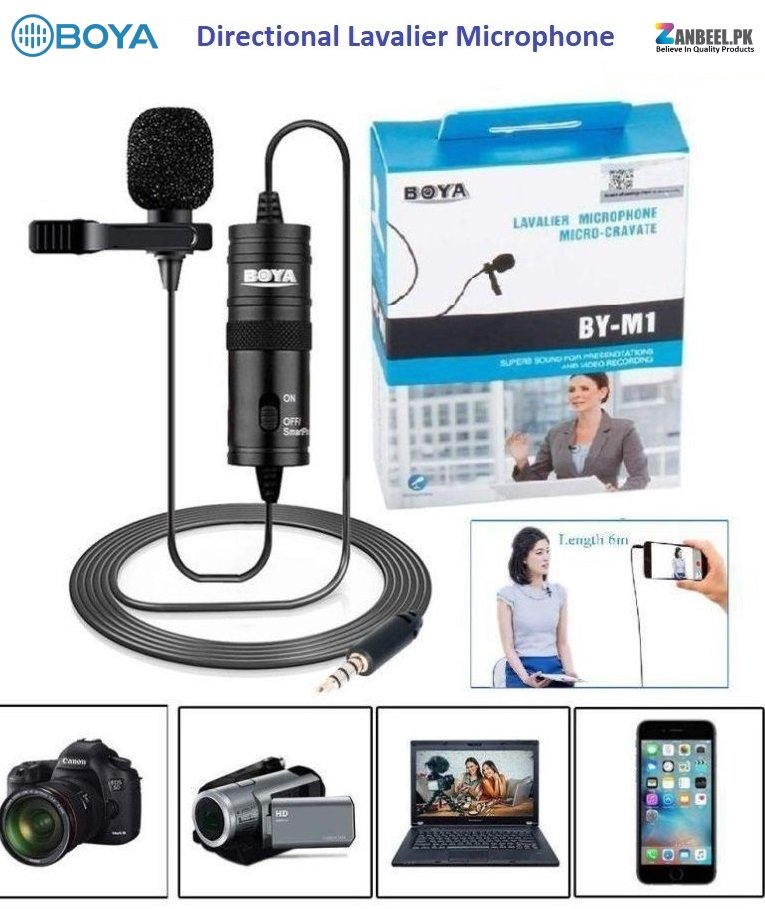 BOYA BY-M1 Omnidirectional Lavalier Microphone (Black) – Long Cable + Accessories