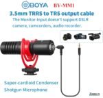 Upgrade your audio with the BOYA BY-MM1 cardioid shotgun mic. Compatible with smartphones, DSLRs & camcorders. Includes TRS/TRRS cables, windshield, shock mount. Capture clear sound, battery-free, 35-18 kHz.