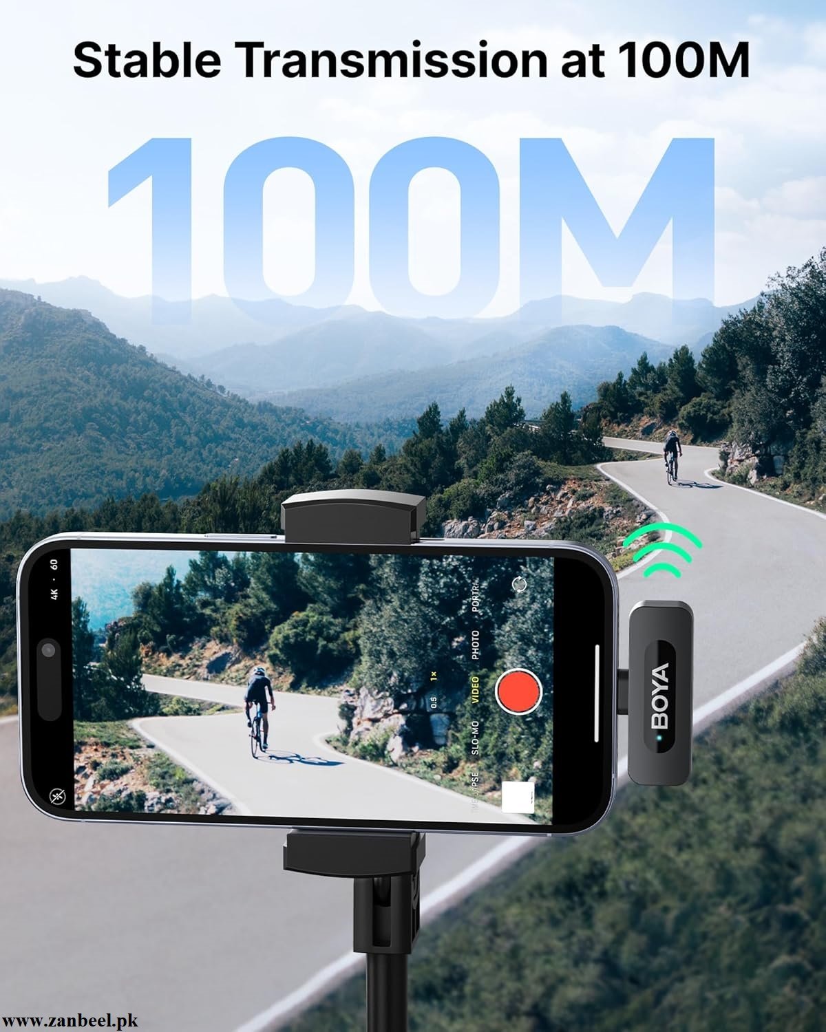 Capture crisp audio with the BOYA BY-V3 Combo — dual transmitters, 2.4 GHz wireless with 100 m range, 9h use + 36h with charging case, one-click noise cancellation, USB-C/Lightning receivers. Perfect for podcasts, vlogs & interviews.