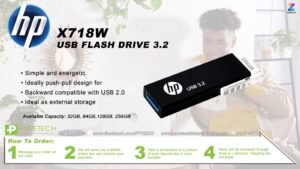 Buy an HP x718w USB 3.2 Flash Drive (32GB, 64GB) in Pakistan. Fast, compact & reliable storage for students, offices & everyday use.