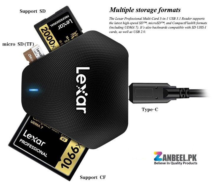 Available At:Buy Lexar Professional Multi-Card 3-in-1 USB 3.1 Reader at Zanbeel.pk.