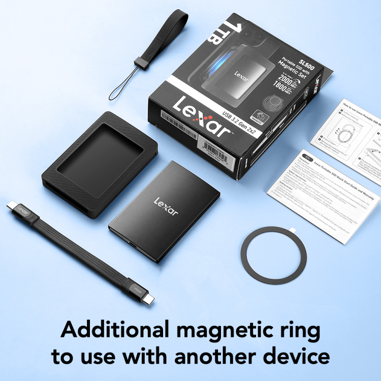 The Lexar SL500 Portable SSD delivers blazing-fast speeds up to 2000MB/s, combined with large storage options of 1TB and 2TB. It is perfect for transferring large files, editing high-resolution videos, and fast backups on the go.