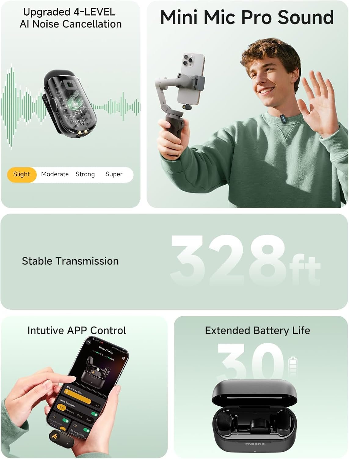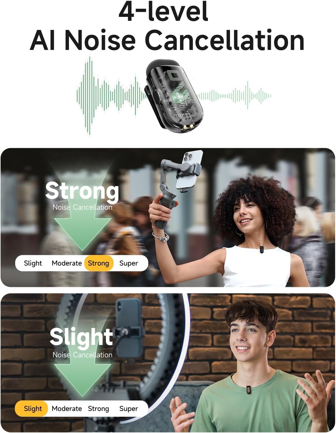🔹328ft Stable Wireless Transmission 4-Level AI Noise Cancellation And Voice Filters