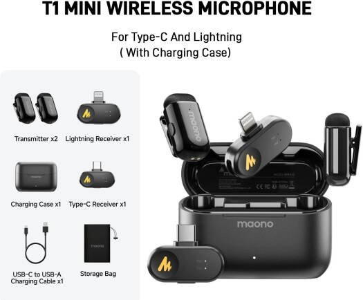 MAONO WAVE T1 Mini – Wireless Lavalier Microphone Perfect for iPhone | Type-c | Tablet | PC — built to level up your content anywhere, anytime!