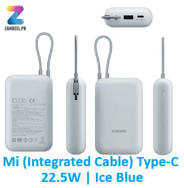 Simplify your charging with the Mi Xiaomi Power Bank 10000mAh featuring an integrated Type-C cable and 22.5W two-way fast charging. No extra cables, no clutter—just fast, reliable power in a stylish Ice Blue finish.