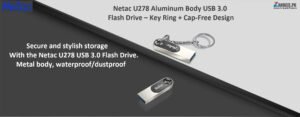 Netac U278 USB 3.0 Metal Flash Drive  32GB To 128 GB | Water-Proof & Dust-Proof Netac U278 Aluminum Body USB 3.0 Flash Drive – Key Ring + Cap-Free Design.