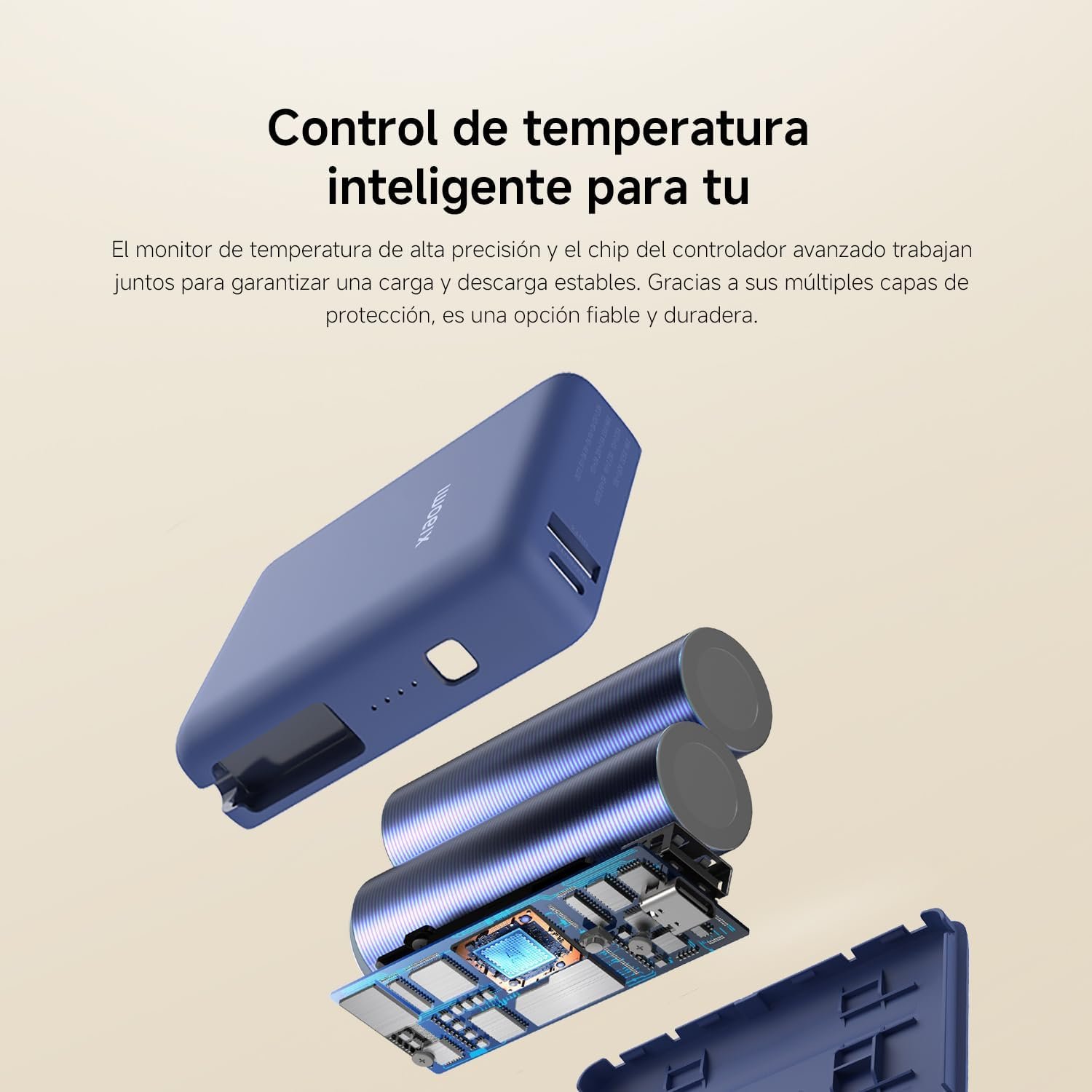 Xiaomi 33W Ice Blue USB-C+USB-A Integrated Cable Power Bank 10000mAh Fast Charging 3 Output Ports Two 5000 mAh Batteries Safe to Take on the Plane