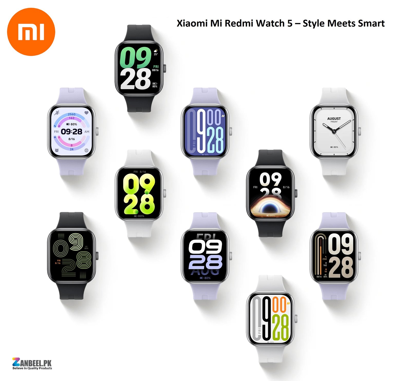 Xiaomi Redmi Watch 5 Pakistan, Redmi Watch 5 24 day battery, Redmi Watch 5 AMOLED Price, Xiaomi Redmi Watch 5 GNSS, Redmi Watch 5 Bluetooth Calling, Redmi Watch 5 2025 Smartwatch AMOLED smartwatch offering a vivid 2.07″ display, 24-day battery life, precise GPS, and comprehensive health tracking in a sleek aluminum design. Ideal for sport, swim, and everyday use.