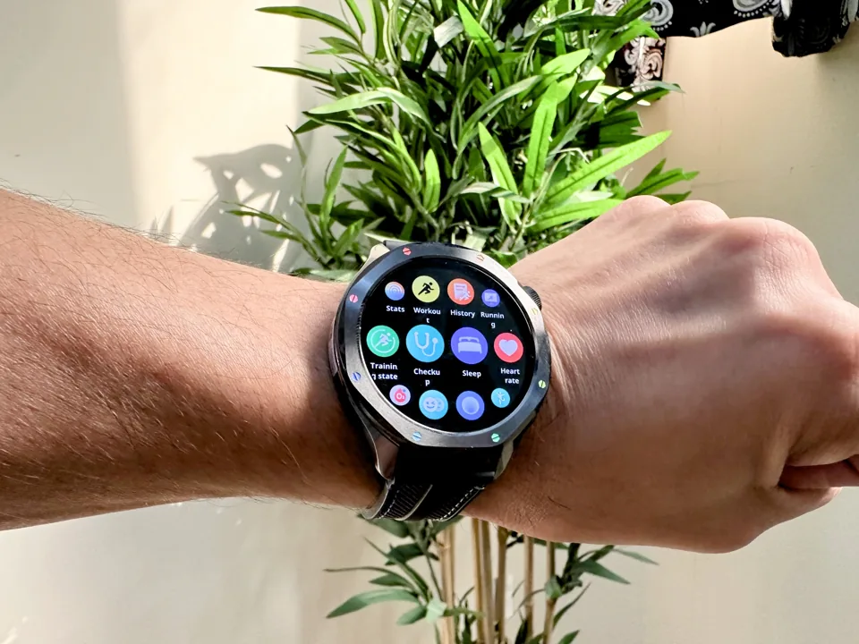 Display: 1.43″ AMOLED screen with a resolution of 466 × 466 pixels (326 PPI), offering vibrant colors and sharp visuals.
