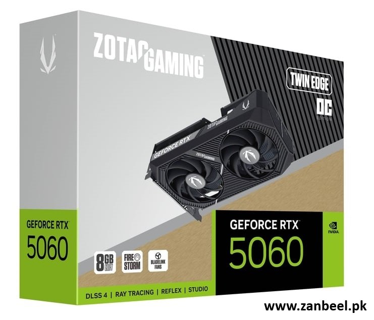 • ZOTAC RTX 5060 price in Pakistan, RTX 5060 Twin Edge OC, 8GB gaming GPU Pakistan, ZOTAC gaming GPU, NVIDIA RTX 5060 OC, compact graphics card Pakistan, best GPU for gaming 2026